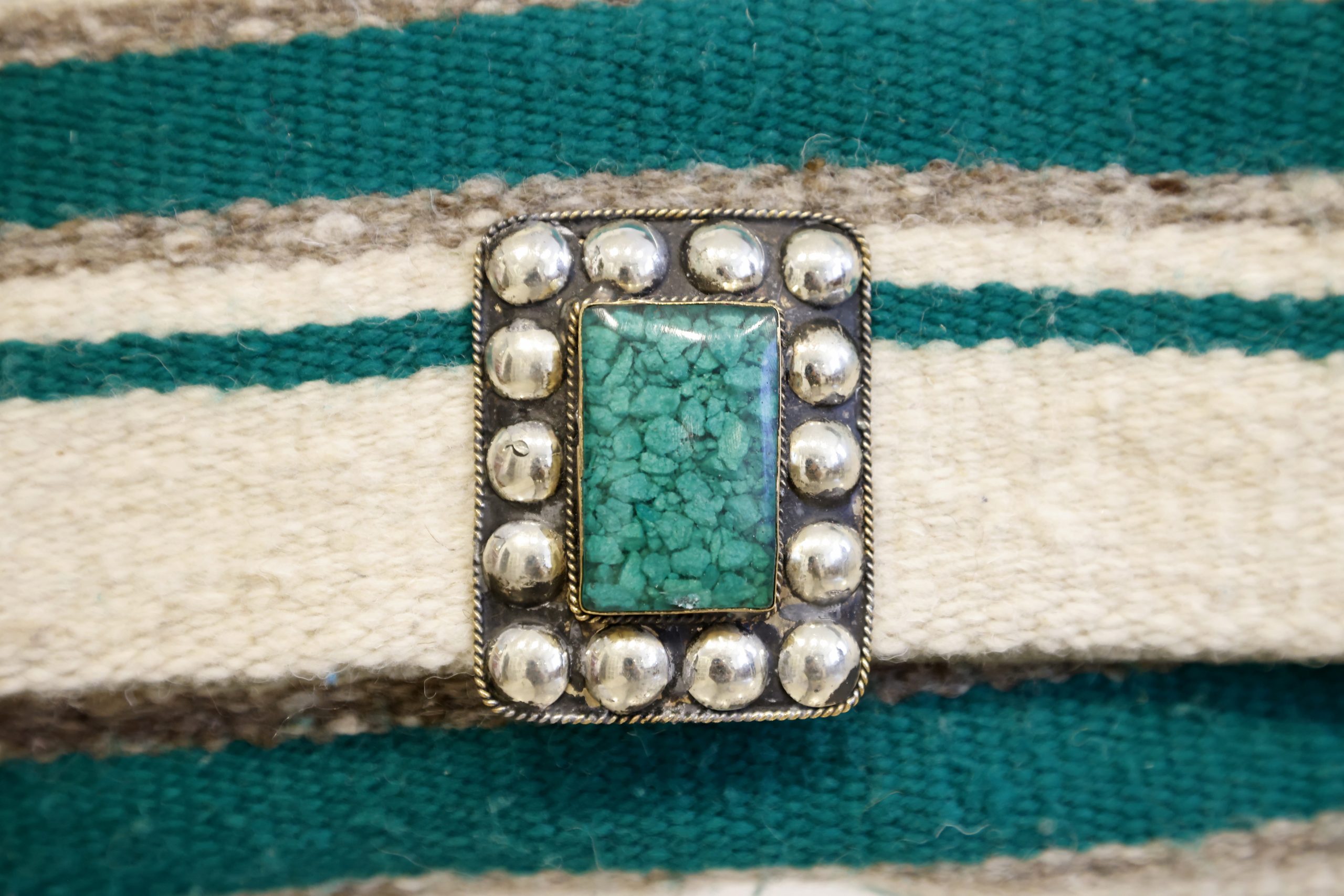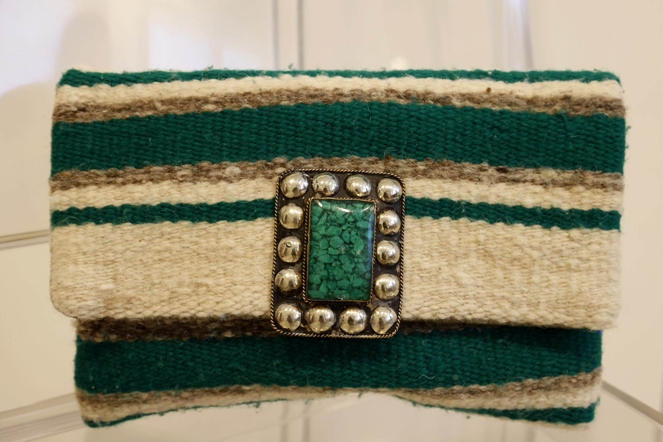 Este bolso hecho a mano en Marruecos es una verdadera obra de arte, con trozos de alfombra Bereber en un vibrante verde. El cierre joya étnica plateada y verde le brinda un toque elegante y único. Además, cuenta con una cadena extraíble que te permite llevarlo de diferentes formas, ya sea como un bolso de mano o colgado del hombro. Perfecto para agregar un toque de estilo y originalidad a cualquier outfit.
