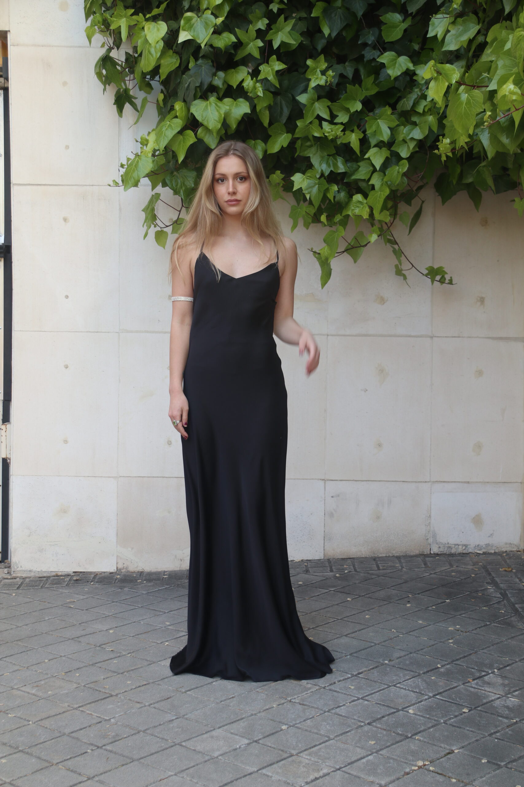 El vestido Marrakech negro es una pieza imprescindible en cualquier armario. Este vestido lencero largo presenta un escote en pico y tirantes cruzados en la espalda, añadiendo un toque de sensualidad a tu look. Confeccionado de manera artesanal en España, cada vestido es cortado y confeccionado uno a uno para asegurar que cada pieza sea única y diferente. Ya sea para una ocasión especial o para el día a día, este vestido negro te hará lucir elegante y sofisticada. ¡Hazte con el tuyo y marca la diferencia en tu estilo!